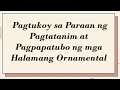 Naipapakita ang wastong pamamaraan ng pagpapatubo ng halamang ornamental tulad ng. Dalhin at ipatsek sa guro. Mga maaaring paraan ng pagbebenta ng halamang ornamental.