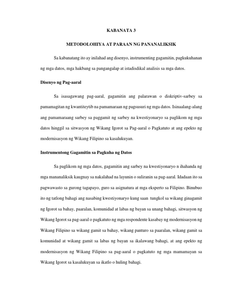 Description Download Kabanata 3 Metodolohiya Ng Pananaliksik Free in pdf format. Halimbawa ng mga pamamaraan sa pangangalap ng datos sa kabanata 3 Ang sumusunod ay isang halimbawa ng pananaliksik na nakasulat sa kabanata 3. Kabanata 3 Metodolohiya Ng Pananaliksik.